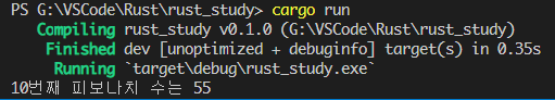 println!("{}번째 피보나치 수는 {}", i, fib);